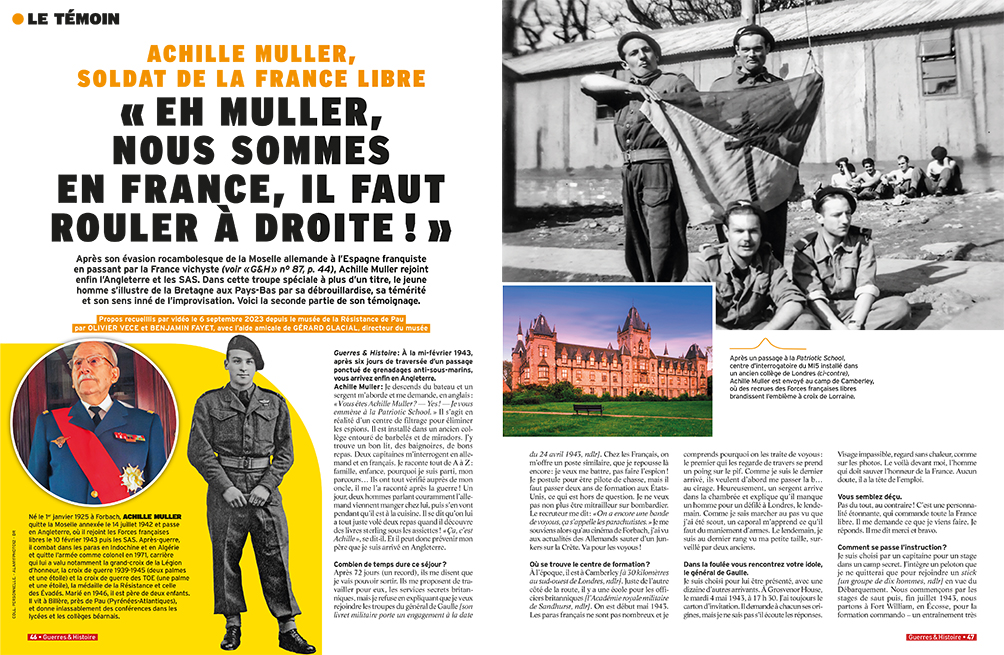 Après son évasion rocambolesque de la Moselle allemande à l’Espagne franquiste en passant par la France vichyste (voir « G&H » nº 87, p. 44), Achille Muller rejoint enfin l’Angleterre et les SAS. Dans cette troupe spéciale à plus d’un titre, le jeune homme s’illustre de la Bretagne aux Pays-Bas par sa débrouillardise, sa témérité et son sens inné de l’improvisation.