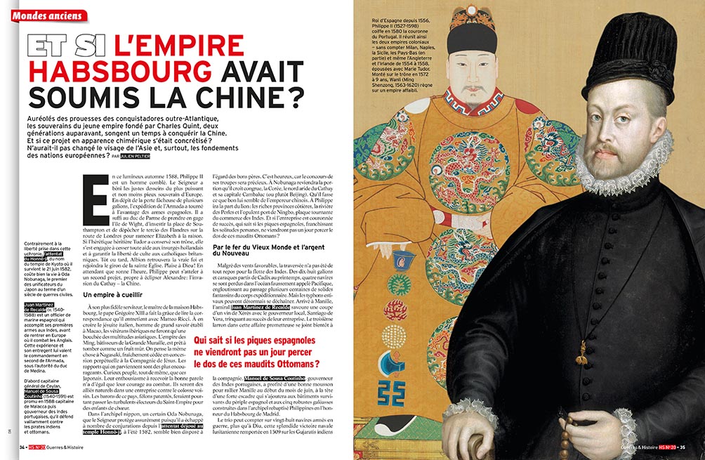 Encore auréolés des prouesses des conquistadores outre-Atlantique, les souverains du jeune empire fondé par Charles Quint, deux générations auparavant, songent un temps à conquérir la Chine. Et si ce projet en apparence chimérique s’était concrétisé ? N’aurait-il pas changé le visage de l’Asie et, surtout, les fondements des nations européennes ? Par Julien Peltier