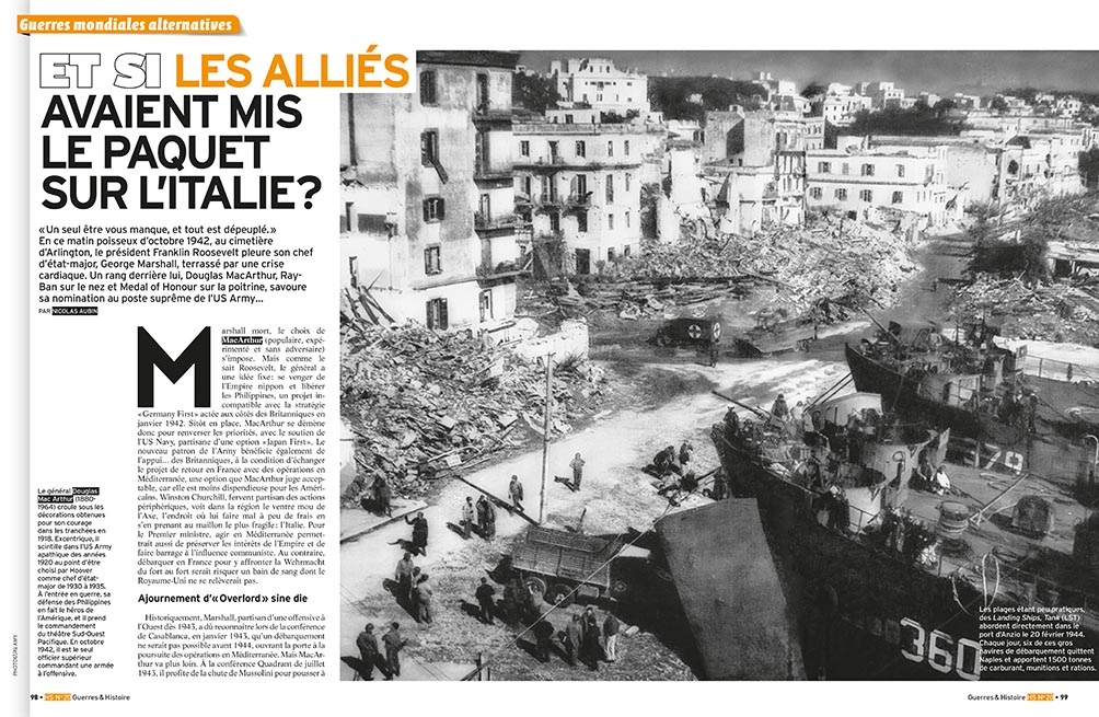 « Un seul être vous manque, et tout est dépeuplé. » En ce matin poisseux d’octobre 1942, au cimetière d’Arlington, le président Franklin Roosevelt pleure son chef d’état-major, George Marshall, terrassé par une crise cardiaque. Un rang derrière lui, le général Douglas MacArthur, Ray-Ban sur le nez et Medal of Honour sur la poitrine, savoure sa nomination au poste suprême de l’US Army. Par Nicolas Aubin